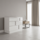 Brick by brick, this three drawer chest rises from the floor with the overlapping pattern of a classic block wall. Finished in a subtly textured, white plaster, the exterior delivers a sense of fresh minimalism that complements the sleek style of this modern collection. The lower drawer is lined in aromatic cedar, providing a storage piece that effortlessly combines form and function.