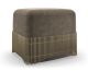 Luxury in a small package, this petite ottoman introduces a sense of rhythm and fluidity to living and bedroom interiors. Moss-green mohair is warmly complemented by a uniquely designed, metal rod skirt in Brushed Gold, introducing a gentle wave pattern that gives just a glimpse of its wood plinth base. Hidden casters make it easy to move from room to room. Well-scaled for vanities and dressing areas, or style in pairs to create a luxe landing at the end of a bed.