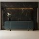 Sleek, glossy and streamlined, this piece adds a punch of rich color to any family room. Distinguished by the stunning, high-gloss Apatite Gloss finish and delicate Whisper of Gold splines, this impressive piece has four drawers with hand-pulls on top and soft-close under-mount guides. The interior is painted to match. The concave sculpting of the three-part base shimmers in Oracle leaf.