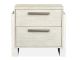 This furniture piece features two drawers with a felt-lined top drawer, resin end panels, tinted drawers with French dovetail in the front and English dovetail in the back. It includes side mount ball bearing guides, a sealed case, wire management, levelers at the front feet, and a USB charger and Type C.