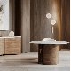 Indulge in intimate gatherings around the Fleur Dining Table, where the partially filled Travertine top and Porcini-finished base harmoniously unite modern luxury with timeless sophistication.
