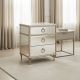 | Features | Mirrored front and end panels. Cast aluminum legs and cast resin molding finished in Aglow. 3/4 Carrara white marble top. Three drawers with undermount soft close drawer guides. Crème De La Crème drawer interiors. |