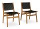 Leather Match;Wood Products and Other, Dining Room Side Chair (2/CN), , Made with acacia wood;Solid wood frame;Light wood-tone finish;Woven black leather straps;Nailheads with brass-tone finish