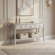 The Intrigue Harper Vintage Blue Console Table is a charming and stylish accent piece that adds character to any entryway or living area. Finished in a rich vintage blue, it introduces a vibrant touch while complementing various decor styles. The table features a spacious surface, perfect for displaying decor, keys, or personal items. Crafted for durability, its elegant design and sturdy construction make it both functional and aesthetically pleasing, making it an ideal addition to enhance your home’s decor.