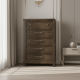 With its rich dark brown wood finish, the Hillcott chest of drawers gives modern farmhouse styling a substantial sensibility. Five spacious drawers offer hidden storage for cozy sweaters and casual tees. The beautiful and sturdy silhouette, elevating this chest into a statement piece that’s timeless, functional and versatile.