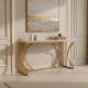 Travertine top, Metal base frame in a burnished brass finish Available to Buy Now
