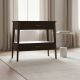 The Lido Nightstand III, crafted from Prima Vera in our Bistre finish, features a sophisticated tapered silhouette with 2 reeded drawers for optimal storage. The custom forged hardware, finished in a dark rubbed bronze, echoes the reeded details throughout.