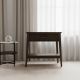The Lido Nightstand V, crafted from Prima Vera in our Bistre finish, features a sophisticated tapered silhouette and reeded drawer and shelf. The custom forged hardware, finished in a dark rubbed bronze, echoes the reeded details throughout.