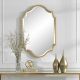 This metal frame, with its elegant curves and arches, is enhanced with a rich gold leaf finish. Perfect for a foyer to welcome your guests or give your powder room an extra touch. The mirror has a 1" bevel and can be hung either vertically or horizontally.