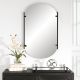 This contemporary style mirror features a pill shaped frameless mirror mounted in between two metal strips. Simple in design and finished in a satin black, this mirror will be perfect over a powder room vanity or make a statement and use over double vanit
