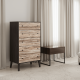 The perfect marriage of simple and contemporary style, the Piperton chest of drawers is a charming addition to your home. It features an expressive two-tone look, with a dark charcoal finish over replicated oak grain with an authentic touch and a replicated sugarberry wood grain. Ball-bearing glides offer smooth opening and closing of the drawers, while matte black knobs and splay legs add a finishing touch.