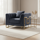 Enjoy this opulent and classy addition to your home! This Luxe Rasha Chair by Roots has a classic sleek beauty to it with it's dark blue and gold design. This velvety 1-seater belongs in any luxe room that wants to add a royal and plush feel to its surroundings. Pair this smooth and sophisticated piece with gold accents and impress while you decompress!
