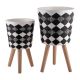 S/2 10/12 Diamond Planter W/ Wood Legs, Black(Kd)