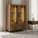 Glass;Wood Products and Other;Metal, Display Cabinet, , Made with rubberwood solids, mango wood veneer, MDF substrate and metal;Natural look wood finish;Black metal legs; tapered black metal bar pulls;Glass-front doors;Adjustable glass shelves;2 drawers with fully finished interior, dovetail construction and ball-bearing side glides; lined in black velvet;LED accent lighting;Power cord included; UL Listed;Assembly required