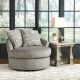 Flaunting a trendsetting silhouette, the Soletren swivel accent chair puts the contemporary in your contemporary home. Its 360-degree swivel gives you an around-the-room view to complement your comfort. Microfiber fabric satisfies your need for a piece that feels as good as it looks. Accented with soft jacquard chenille throw pillows for a splash of geometric pattern and color contrast.