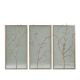 A set of three silvered metal and silvered wood framed wall panels, each rectangular frame with a cast branch overlaid on an antiqued hand leafed mirror back.