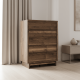 Nostalgic style, retooled for today’s trends. This wide chest of drawers puts an elevated twist on mod aesthetics. Its warm brown tones reflect the mid-century vibes you love, while the angular base incorporates contemporary motifs. Integrated drawer handles round out the look in sleek style. With this wide chest, you can build your bedroom into a modern haven with a touch of retro-cool flair.