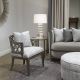 Jacqueline is an elegant, Louis XVI inspired transitional showstopper. With an alluring play on metallic, the exposed wood gold leaf frames outline the straight backs and architecturally rounded sides while rounded corner seat cushions invitingly extend beyond. Softly contrasted hues adorn the multi pillow scatter back and perch atop double sofa cushions for perfectly blended comfort and high style.