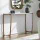 With understated sophistication, the Affinity Console table complements with ease. Featuring a shapely cast aluminum base in antique gold that encapsulates a natural white marble top. True to the nature of natural materials, each piece will have unique marbling and veining throughout.