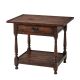 A reclaimed oak veneered and mahogany accent table, the planked top with a raise edge, above a frieze drawer and baluster turned legs joined by an undertier, on bun feet.