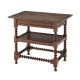 A mahogany and reclaimed oak side table, the rectangular planked and breadboard top above a moulded frieze, on bobbin turned and block legs joined by a boarded tier and bobbin stretchers below.
