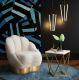 Modern Glam is epitomized in the soft curves and bold design of the Bloom chair by TOV. Boasting posh velvet upholstery, a curved gold stainless steel base and channel tufting, this chair is sure to dazzle. Available in several soft color options.