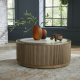 The Camdill Round Cocktail Table combines sleek design with functional elegance. Its smooth round surface offers ample space for drinks and decor, while the sturdy construction ensures long-lasting durability. Perfect for both intimate gatherings and larger living spaces, this table adds a refined touch to your living room setup, blending seamlessly with various interior styles.
