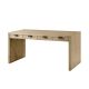 Figured cathedral ash desk with artful grain patterns. Four soft close drawers available in Dune or Earth with metal pulls in Ember finish.