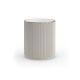 A petite barrel table like this can fit in any space. This feminine piece has a clear glass top and delicately fluted casework in Matte Pearl surrounding the piece. Inside a one-touch latch door with Whisper of Gold hardware discover one interior adjustable shelf with a finish that matches the piece.