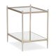 | Features | Metal frame finished in Neutral Metallic. Clear glass top. Silver Leaf pattern on back of bottom mirrored shelf. |