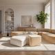 Like a pebble in the desert, the Large Serir Cocktail Table displays varying textures. Its four-sided top is unfilled, highly textured Travertine with soft beveled and rounded edges. The base showcases Sundrenched Oak, with rounded edges and trimmed in Whisper of gold metal.