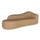 This chaise expands the Kalahari Sectional. It has no arms and a serpentine open seat. Camel-colored angora-like velvet with a base in Sparkling Argent.