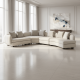 - Ivory micro-ribbed linen blend upholstery with plush mohair and wool-blend velvet cushions