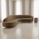 Make a dramatic statement with the Regal Curved Sectional, an artful expression of glamour and comfort. Upholstered in sumptuous velvet, its gently curved silhouette is accented by a sleek Almost Black wood trim and elegantly tapered metal legs finished in Champagne Gold. Designed with left- and right-arm wedges and a center wedge, this sectional invites both conversation and relaxation in style.