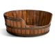 For the medium dog a walnut dog bed in the form of an irish oval peat bucket with planked sides in a distressed finish and patinated brass studded bands to top and bottom. Based on an original of c.1760. (Old salescode: 495053)
