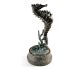 Seahorse in antique dark bronze with rub-through on a circular marble base. (Old salescode: 495778-BRS-031)