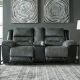 Fabric, DBL Rec Loveseat w/Console, Dark, Corner-blocked frame with metal reinforced seat; Attached back and seat cushions; Pull tab reclining motion; Lift-top storage console and 2 cup holders; High-resiliency foam cushions wrapped in thick poly fiber; Two-tone faux leather upholstery