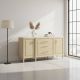 Introduce a touch of refined elegance and functional sophistication to your dining or living space with the Eave II Credenza. This piece, from the esteemed Eave II collection, showcases a harmonious blend of classic design and contemporary simplicity. The credenza features a smooth, luxurious marble top, providing a beautiful and durable surface for serving and display. The cabinet doors and drawers are crafted from a light, natural wood, highlighting its warm tones and subtle grain. The center drawers are subtly framed, adding a touch of architectural detail and visual interest. The sleek, elongated hardware complements the clean lines of the design. The credenza offers ample storage with its cabinet space and drawers, making it perfect for organizing dining essentials, linens, or media components. The piece rests on elegantly tapered legs, adding a touch of lightness and sophistication to its overall profile. The Eave II Credenza is designed to be a stylish and functional centerpiece, blending timeless design with modern practicality.Product Dimensions (cm):