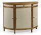 The Inductance demi lune from Jonathan Charles evokes the feeling of summers in the South of France and balmy rides in vintage convertibles. A solid case with Kravet linen fabric cabinet doors and understated hardware is capped with a single drawer under a grey fruitwood top. Hovering a few inches above the floor on handsomely tapered feet with traditional accents, Inductance plays well with sophisticated spaces and vintage interiors.