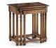 Nest of three tables with inlaid parquet oyster top and a heavily distressed antique walnut finish. (Old salescode: 493429)