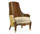 Spectacular gilded and finely carved French Empire inspired chair with scooped back, the walnut veneers a pair of minutely detailed antique gilded wings. After an early 19th century design. (Old salescode: 494537)