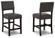 Upholstered Barstool (2/CN),,Wood frame;Dark brown wood-tone finish;Foam cushioned seat with gray faux leather upholstery;Assembly required