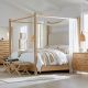 Retreat Pole Rattan King Upholstered Poster Bed withCanopy
