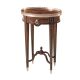 A mahogany and flame veneered lamp table with fine brass mounts, the brass galleried oval top above a frieze drawer on panelled square tapering legs with brass cappings joined by an 'X' stretcher.