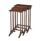 A mahogany nest of three graduated tables, the rectangular moulded edge tops on turned and fluted double end column supports with splay legs joined by stretchers. The originals Regency.