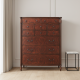 A mahogany and figured mahogany Gentleman’s chest of drawers, the bowfront reeded edge top with protruding corners above leaf carved capital and reeded column supports, with an arrangement of eight short drawers and three long graduated drawers below, on turned feet. Inspired by a Federal Period original.