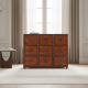 A Campaign and brass filing chest of drawers, with nine drawers, on bun feet. The original Victorian.