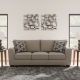 Transitional and right on trend. This sofa’s upholstery is a delightful change from the ordinary, with hints of soft brown giving the gray hue added depth. It’s punctuated with chic accent pillows in an eye-catching, stylized stripe design. Whether you're hosting friends and family or relaxing solo, this sofa invites homey, comfortable character into your space.