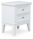 Two Drawer Night Stand,Light,Made with hardwood solids and MDF substrates;White finish;Knobs with satin nickel-tone finish;2 drawers with fully finished interior, dovetail construction and heavy duty ball-bearing side glides (top drawer felt lined);Flare legs