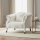 An opulent Living Room Chair by Roots Furniture made to impress and provide comfort. Designed by the Influencer Noha Albabtain, this elegant white sofa chair with gold accents and a plush cushion adds an unmistakable lavishness to any living room.